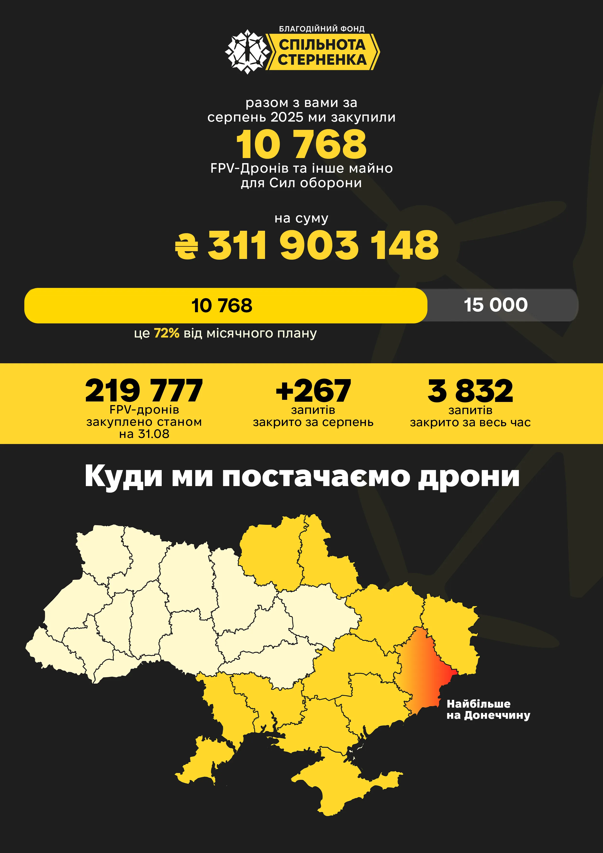 Підтримай наші збори донатом, щоб стати спонсором ефективного нищення окупантів.
