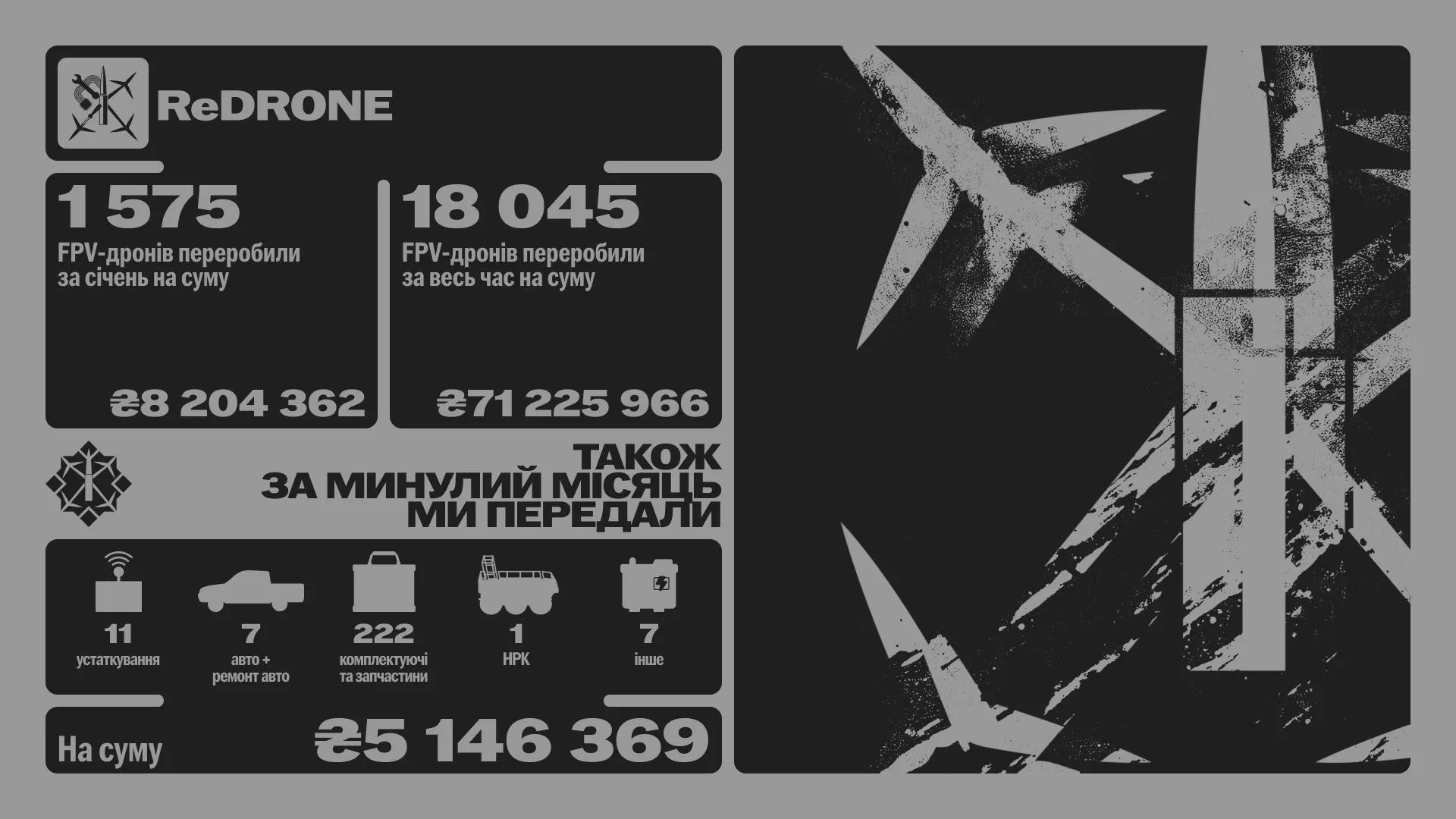 Підтримай наші збори донатом, щоб стати спонсором ефективного нищення окупантів.